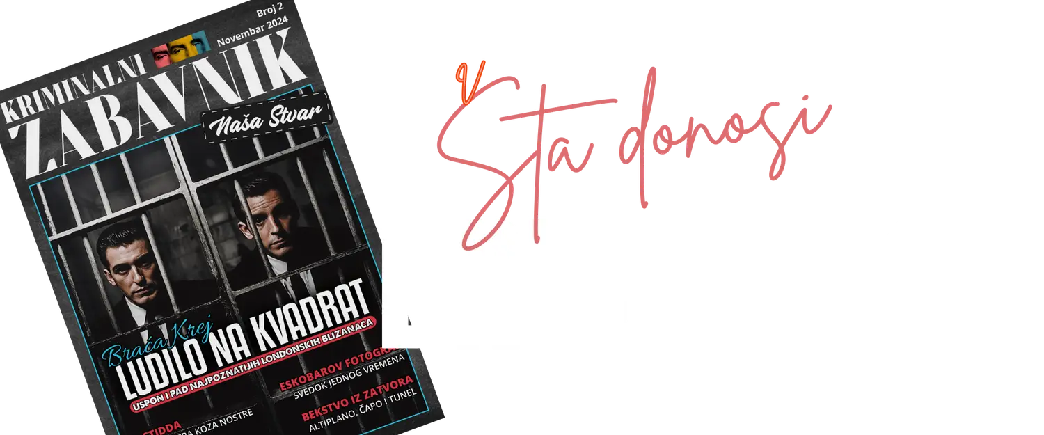 Na društvenim mrežama često nemamo dovoljno prostora da vam ispričamo sve što želimo – ograničen broj karaktera jednostavno nije dovoljan. Zato smo kreirali kriminalni zabavnik “Naša Stvar” – mesto gde svaki tekst dobija prostor koji zaslužuje, bez ograničenja.